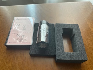 外箱と内容物はシンプル。洗濯機の給水ホースと蛇口の間に噛ませる小さなアダプターです。